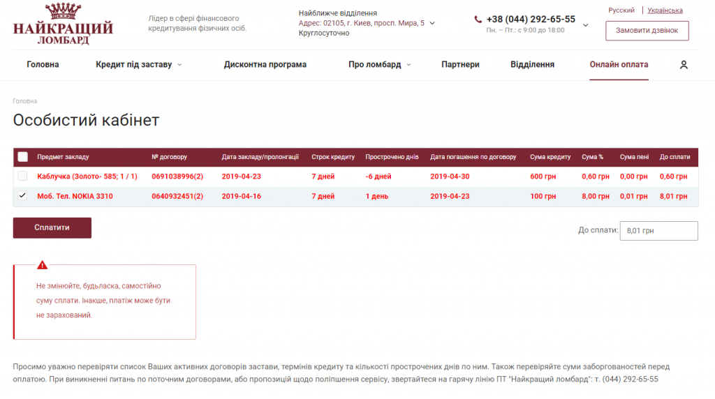 Для успешной оплаты процентов по кредиту, просмотрите, пожалуйста, скриншоты этапов оплаты в Онлаин-кабинете.